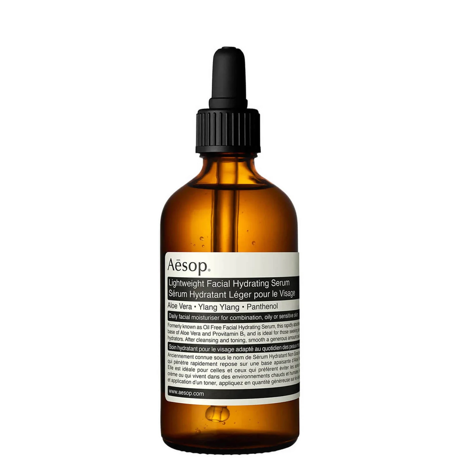 With its signature light texture, the Aesop Lightweight Facial Hydrating Serum is the perfect finish for any skincare routine where a little extra care and hydration is desired. It provides vital, powerful, daily moisturisation, without the greasiness or weight of a cream-based lotion. Using a formula built on Aloe Vera juice, this serum is quickly absorbed – instantly calming and soothing the skin, while extracts of Ylang Ylang and Panthenol help regulate oiliness and promote balance within. When used daily as a final step in skincare for combination, oily, or sensitive skin, the lightness of this product ensures a longer-lasting, non-comedogenic matte finish, while providing a generous vitamin boost. Gently massaging this serum into cleansed and toned skin, morning and evening, leaves the skin thoroughly nourished, hydrated, and shine-free.