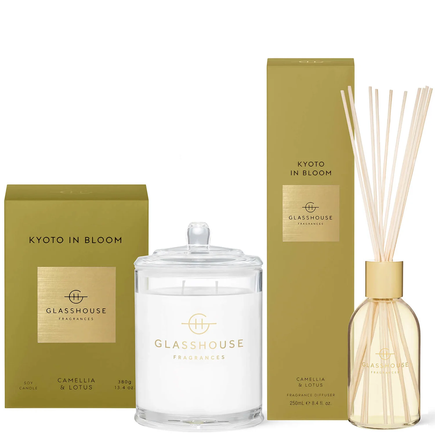 Capturing the essence of Springtime in Kyoto, the Glasshouse Fragrance Kyoto in Bloom Candle and Liquid Diffuser set emits a fresh, amber floral scent to fill the home with an enchanting air.
