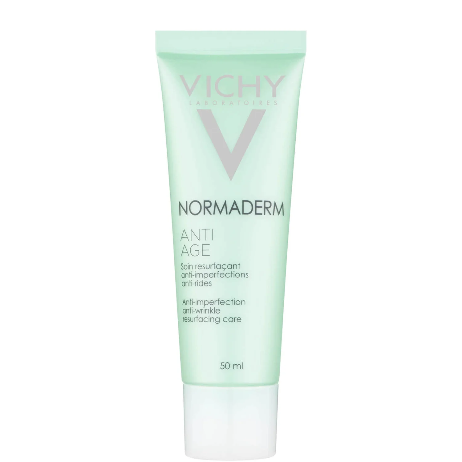 For the first time, Vichy combines ingredients such as glycolic and lipo-hydroxy acids (LHA) with Vitamin C. The product helps target both belmishes (irregular texture, enlarged pores, dull complexion) as well as wrinkles. This innovative skin care product also hydrates skin for up to 24 hours (Instrumental test). The appearance of wrinkles and blemishess are reduced.